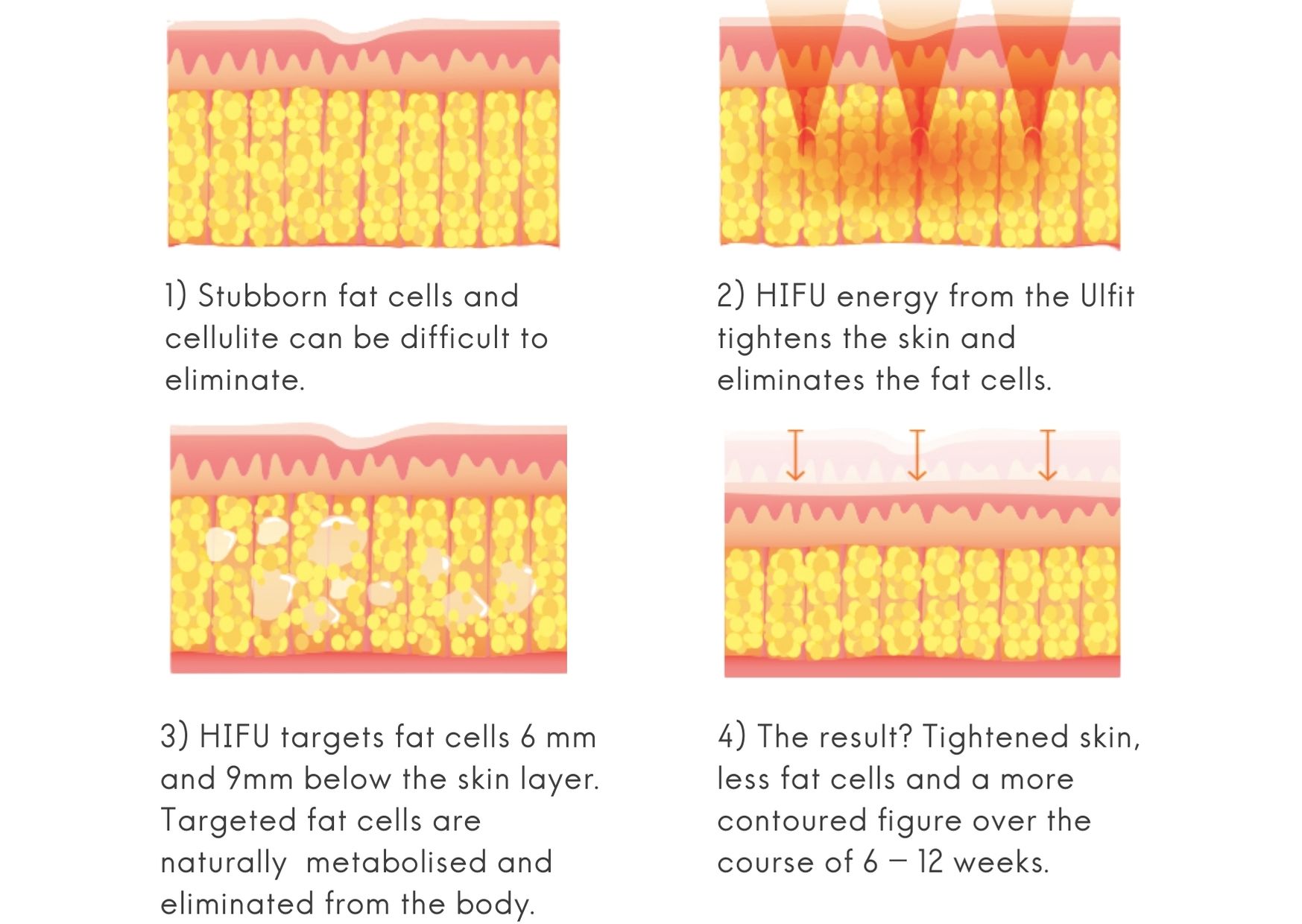 If you’re concerned with shifting the last few cm’s off to help you achieve your body goals, then HIFU body contouring may be for you.